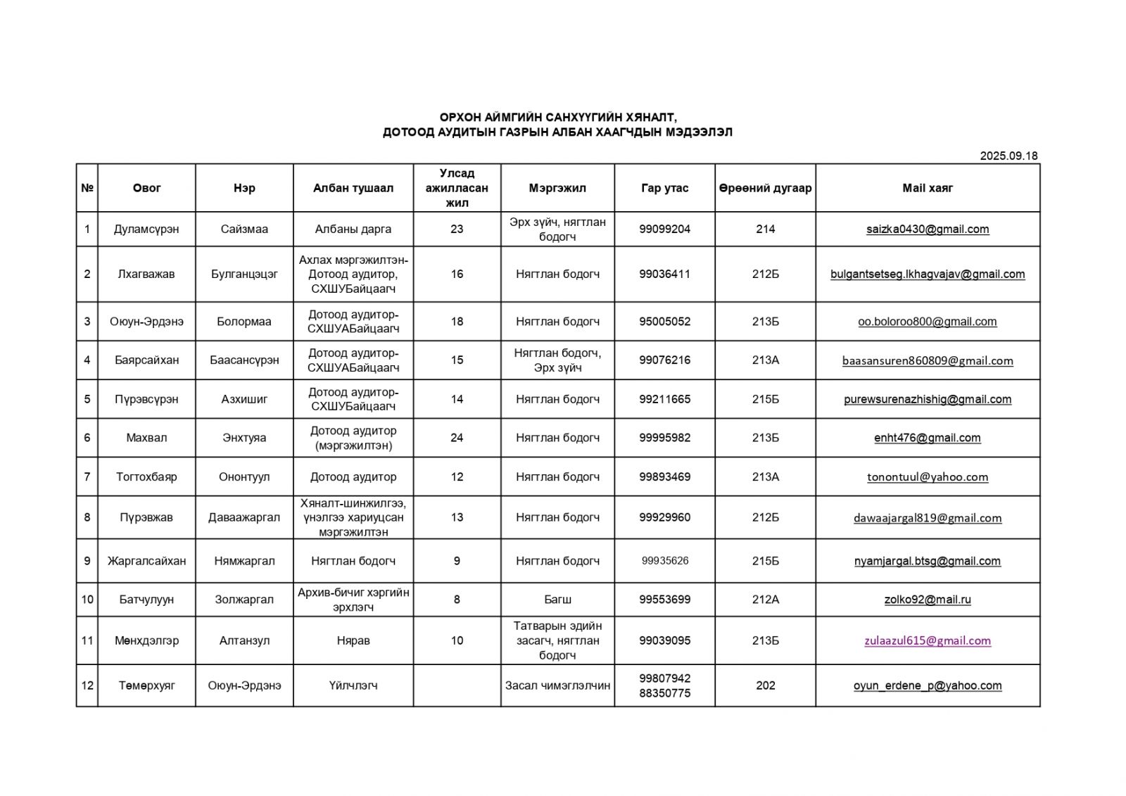 АУДИТЫН ГАЗРЫН ДАРГА Д.САЙЗМАА