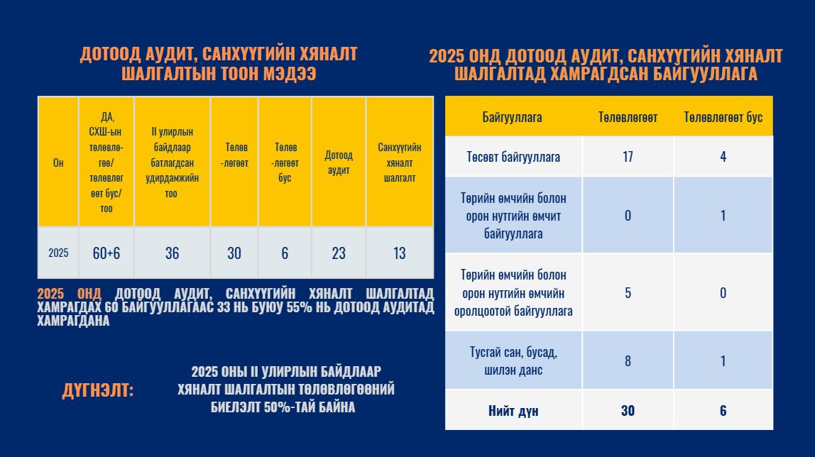 БАЙГУУЛЛАГЫН НЭР: САНХҮҮГИЙН ХЯНАЛТ,ДОТООД АУДИТЫН ГАЗАР