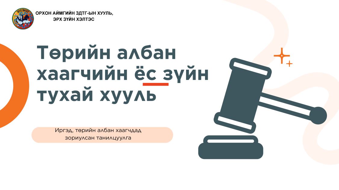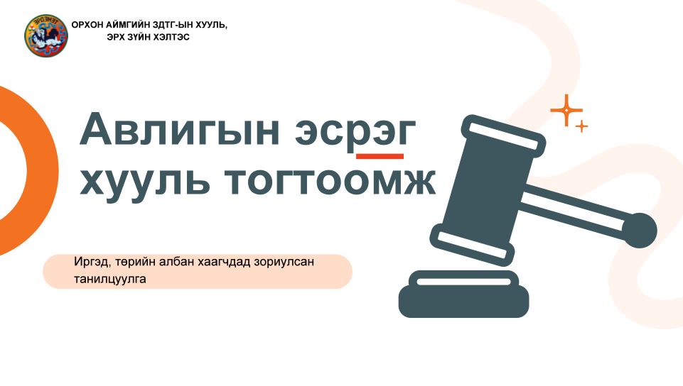 Орхон аймгийн ЗДТГазрын Хууль, эрх зүйн хэлтсийн Эрх зүйн хөтөч Г.Ганчимэг "Төрийн албан хаагчийн ёс зүй", "Авлигын эсрэг хууль" зэрэг сэдвээр сургалт зохион байгууллаа.